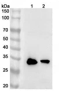 Western blot analysis was performed using anti-CHCHD6 polyclonal antibody at 1ug/mL on various samples.Lane 1:Mosue brain lysateLane 2:Rat brain lysate