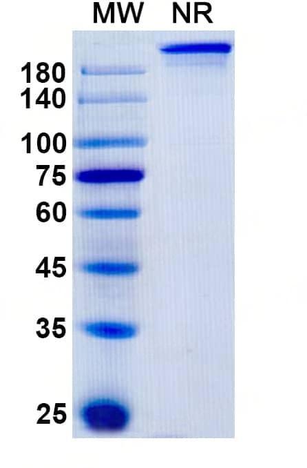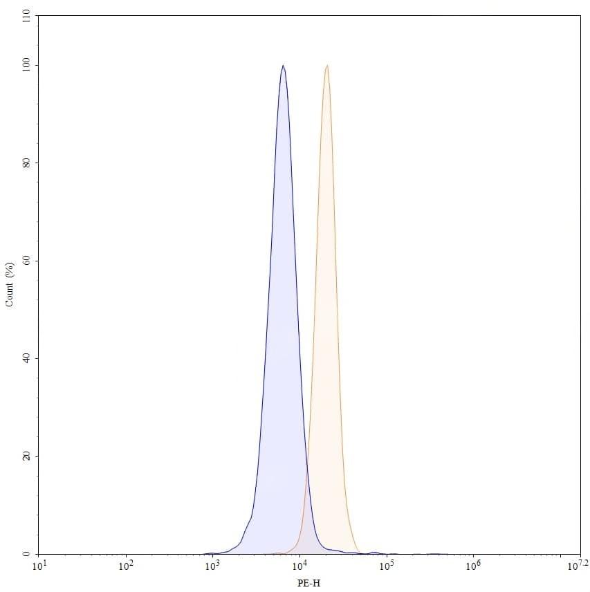 SDS-PAGE for Research Grade Lenvervimab | Flow-cytometry using PE anti-human RSF1 antibody. K562 cells were fixed and permeabilized, then stained with an irrelevant antibody (Blue Histogram) or an PE anti-human RSF1 monoclonal antibody (Catalog VK619016, Yellow Histogram) at a concentration of 5 µg/ml for 30 mins at RT. After washing, cells analysed on a NovoCyte Flow Cytometer. ### Flow-cytometry using FITC anti-human RSF1 antibody. K562 cells were fixed and permeabilized, then stained with an irrelevant antibody (Blue Histogram) or an FITC anti-human RSF1 monoclonal antibody (Catalog VK619016, Yellow Histogram) at a concentration of 5 µg/ml for 30 mins at RT. After washing, cells analysed on a NovoCyte Flow Cytometer.