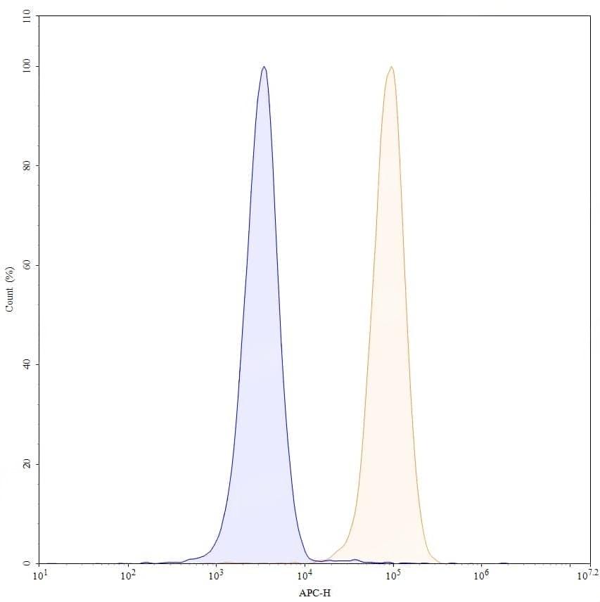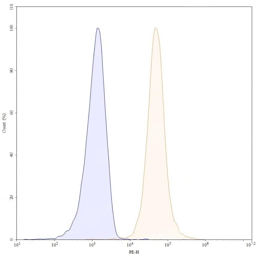 SEC-HPLC detection for Research Grade Natalizumab. | SDS-PAGE for Research Grade Natalizumab | Flow-cytometry using APC anti-human CD49d antibody. Jurkat cells were stained with an irrelevant antibody (Blue Histogram) or an APC anti-human CD49d monoclonal antibody (Catalog: HY596016, Yellow Histogram) at a concentration of 5 µg/ml for 30 mins at RT. After washing, cells analysed on a NovoCyte Flow Cytometer. ### Flow-cytometry using FITC anti-human CD49d antibody. Jurkat cells were stained with an irrelevant antibody (Blue Histogram) or an FITC anti-human CD49d monoclonal antibody (Catalog: HY596016, Yellow Histogram) at a concentration of 5 µg/ml for 30 mins at RT. After washing, cells analysed on a NovoCyte Flow Cytometer. ### Flow-cytometry using PE anti-human CD49d antibody. Jurkat cells were stained with an irrelevant antibody (Blue Histogram) or an PE anti-human CD49d monoclonal antibody (Catalog: HY596016, Yellow Histogram) at a concentration of 5 µg/ml for 30 mins at RT. After washing, cells analysed on a NovoCyte Flow Cytometer.