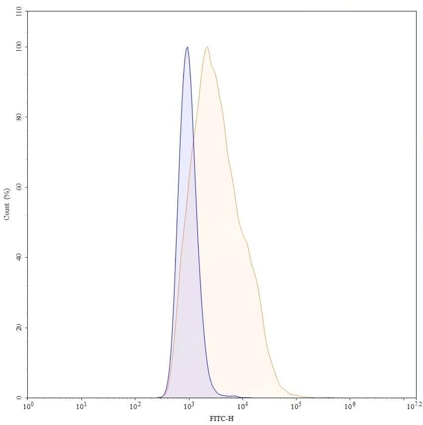 SEC-HPLC detection for Research Grade Befovacimab. | Detects TFPI in indirect ELISAs. | Flow-cytometry using anti-human TFPI antibody. HepG-2 cells were stained with an irrelevant antibody (Blue Histogram) or an anti-human TFPI monoclonal antibody (Catalog HY403016, Yellow Histogram) at a concentration of 5 µg/ml for 30 mins at RT. After washing, bound antibody was detected using a a Goat Anti-Human IgG H&L Polyclonal Antibody, FITC (abinScience: HF690414) and cells analysed on a NovoCyte Flow Cytometer. | SDS-PAGE for Research Grade Befovacimab