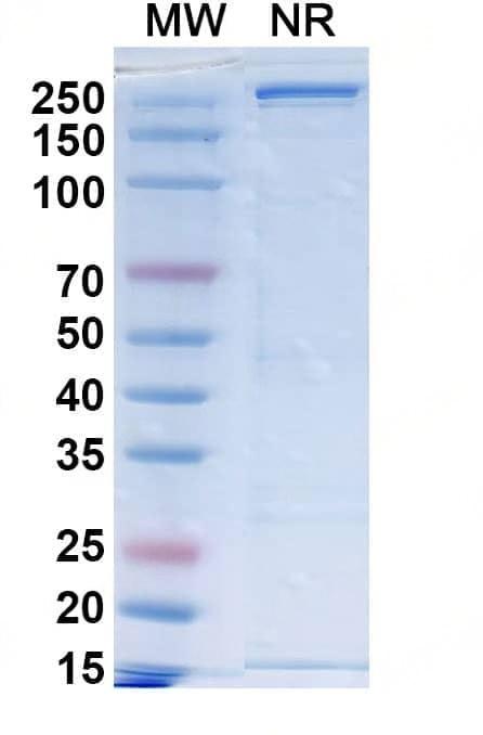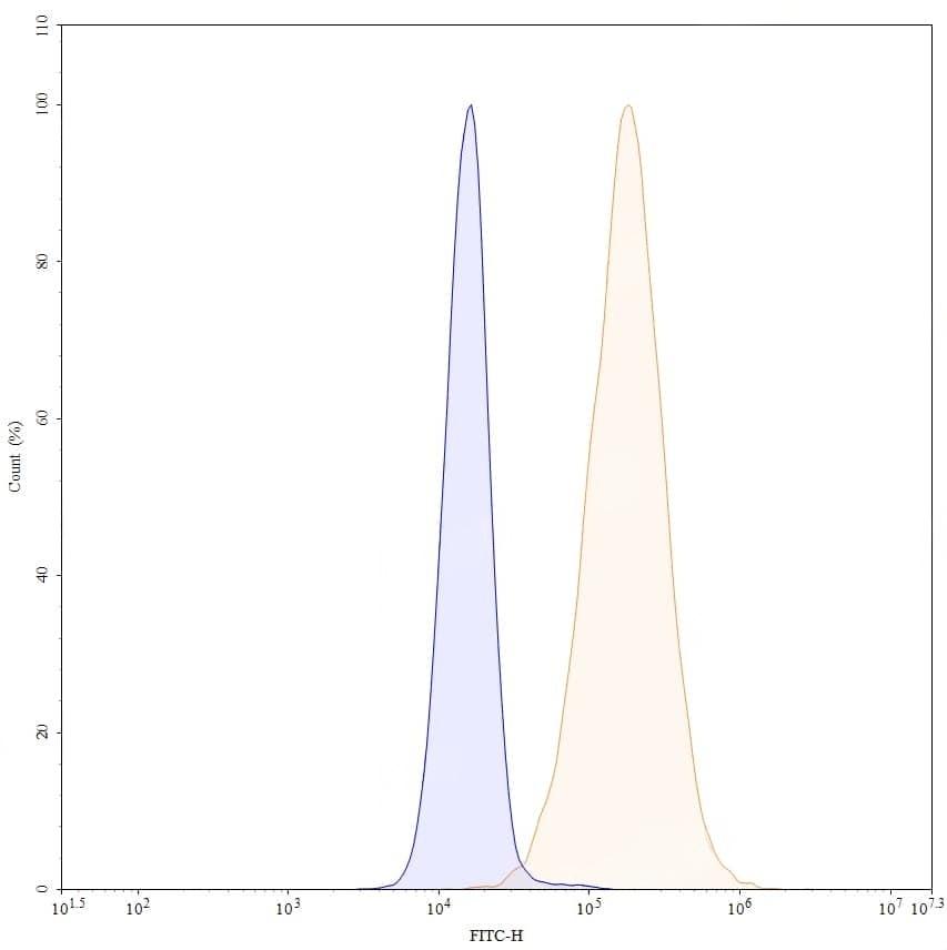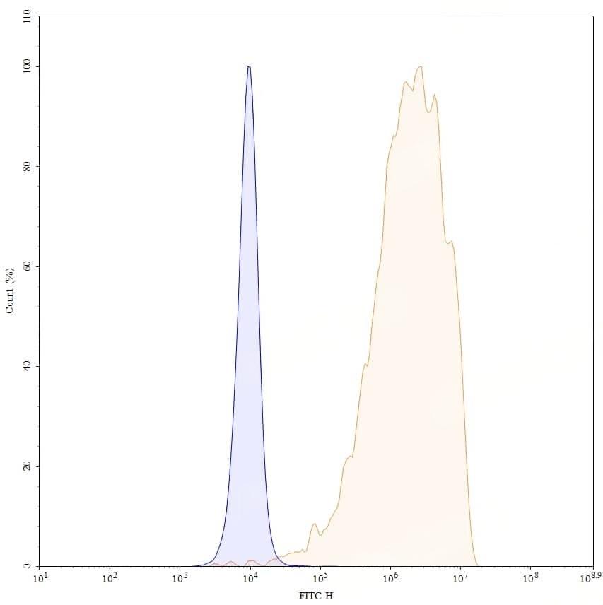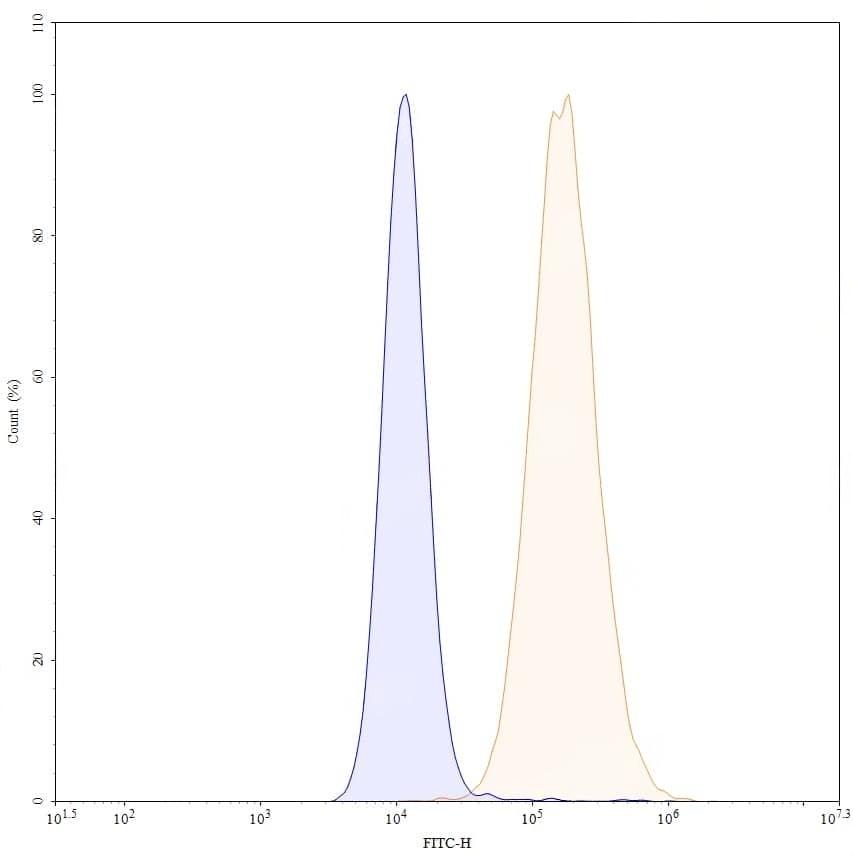 SEC-HPLC detection for Research Grade Sacituzumab. | Detects Human TACSTD2/TROP2 in direct ELISAs. | SDS-PAGE for Research Grade Sacituzumab. | Flow-cytometry using anti-human TACSTD2 antibody. Untransfected cells (blue Histogram) and Transfected cells (Yellow Histogram) were stained with an anti-human TACSTD2 monoclonal antibody (Catalog HY373016) at a concentration of 5 µg/ml for 30 mins at RT. After washing, bound antibody was detected using a Goat Anti-Human IgG H&L Polyclonal Antibody, FITC (abinScience: HF690414) and cells analysed on a NovoCyte Flow Cytometer. ### Flow-cytometry using anti-human TACSTD2 antibody. Hela cells were stained with an irrelevant antibody (Blue Histogram) or an anti-human TACSTD2 monoclonal antibody (Catalog HY373016, Yellow Histogram) at a concentration of 5 µg/ml for 30 mins at RT. After washing, bound antibody was detected using a a Goat Anti-Human IgG H&L Polyclonal Antibody, FITC (abinScience: HF690414) and cells analysed on a NovoCyte Flow Cytometer. ### Flow-cytometry using anti-human TACSTD2 antibody. MCF-7 cells were stained with an irrelevant antibody (Blue Histogram) or an anti-human TACSTD2 monoclonal antibody (Catalog HY373016, Yellow Histogram) at a concentration of 5 µg/ml for 30 mins at RT. After washing, bound antibody was detected using a a Goat Anti-Human IgG H&L Polyclonal Antibody, FITC (abinScience: HF690414) and cells analysed on a NovoCyte Flow Cytometer. ### Flow-cytometry using anti-human TACSTD2 antibody. MDA-MB-468 cells were stained with an irrelevant antibody (Blue Histogram) or an anti-human TACSTD2 monoclonal antibody (Catalog HY373016, Yellow Histogram) at a concentration of 5 µg/ml for 30 mins at RT. After washing, bound antibody was detected using a a Goat Anti-Human IgG H&L Polyclonal Antibody, FITC (abinScience: HF690414) and cells analysed on a NovoCyte Flow Cytometer. | Flow-cytometry using anti-human TACSTD2 antibody. Untransfected cells (blue Histogram) and Transfected cells (Yellow Histogram) were stained with an anti-human TACSTD2 monoclonal antibody (Catalog: HY373016) at a concentration of 5 µg/ml for 30 mins at RT. After washing, bound antibody was detected using a Goat Anti-Human IgG H&L Polyclonal Antibody, FITC (abinScience: HF690414) and cells analysed on a NovoCyte Flow Cytometer.