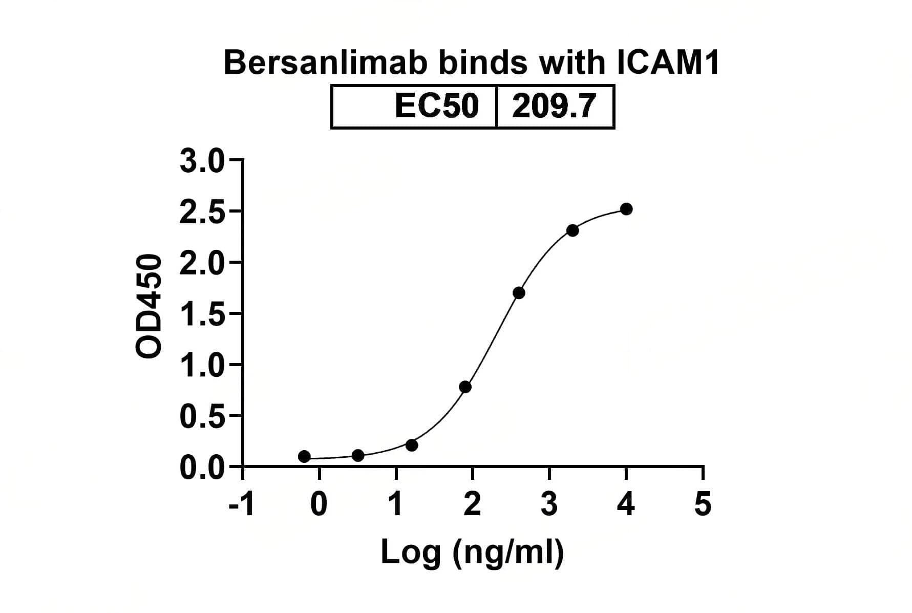 Bersanlimab (BI-505) is a fully human monoclonal antibody that targets intercellular adhesion molecule-1 (ICAM-1 or CD54). Bersanlimab has anticancer effects.• Intercellular adhesion molecule-1 (ICAM-1): From molecular functions to clinical applications in cancer investigation., PMID:39317271• Quercetin inhibits TNF-α induced HUVECs apoptosis and inflammation via downregulating NF-kB and AP-1 signaling pathway in vitro., PMID:32957369• ICAM1 initiates CTC cluster formation and trans-endothelial migration in lung metastasis of breast cancer., PMID:34381029• The Roles of Lipoprotein in Psoriasis., PMID:32013194• Islet beta-cells and intercellular adhesion molecule-1 (ICAM-1): Integrating immune responses that influence autoimmunity and graft rejection., PMID:37619906• Genetic Variation in Intercellular Adhesion Molecule-1 (ICAM-1) and Diastolic Heart Failure in the Black Population in the United States., PMID:37062471• Systematic pan-cancer analysis insights into ICAM1 as an immunological and prognostic biomarker., PMID:38979944•Fusobacterium nucleatumpromotes colorectal cancer cells adhesion to endothelial cells and facilitates extravasation and metastasis by inducing ALPK1/NF-κB/ICAM1 axis., PMID:35220887• Gene regulation of intracellular adhesion molecule-1 (ICAM-1): A molecule with multiple functions., PMID:34715236• Intercellular adhesion molecule-1 suppresses TMZ chemosensitivity in acquired TMZ-resistant gliomas by increasing assembly of ABCB1 on the membrane., PMID:38924997