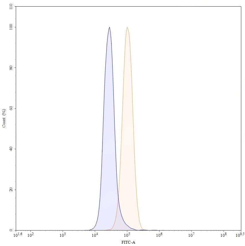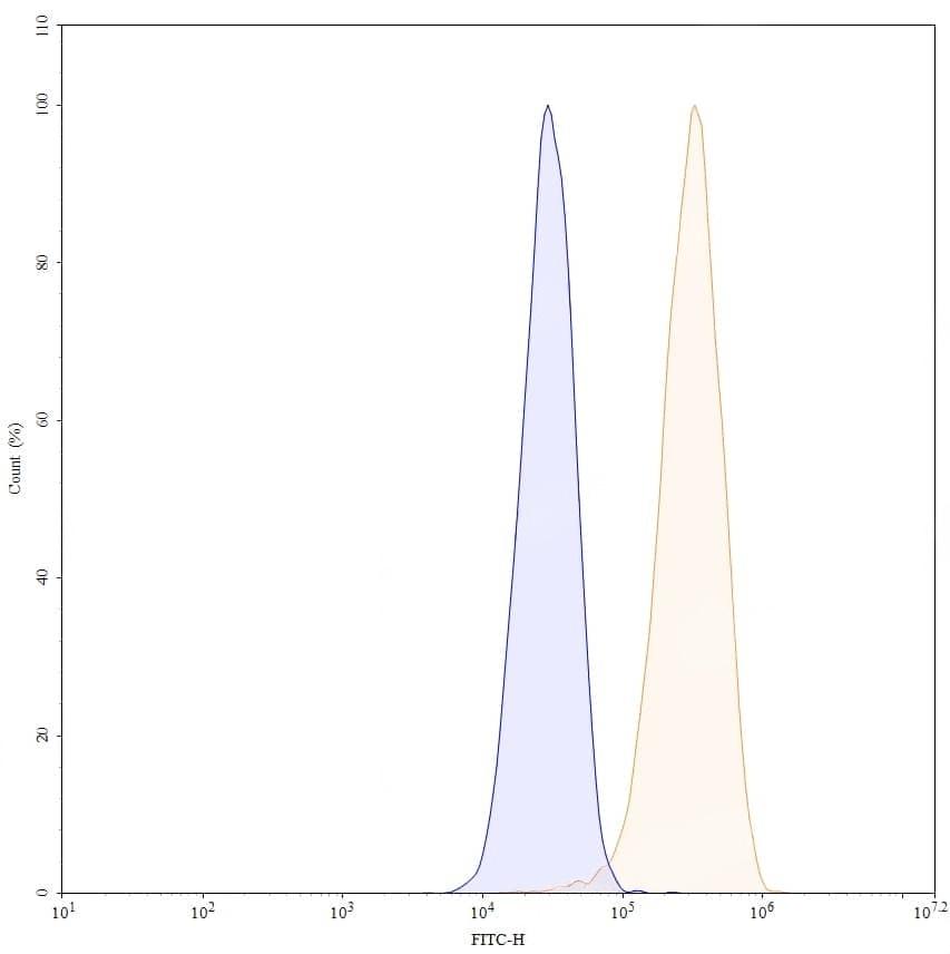 SEC-HPLC detection for Research Grade Pertuzumab. | Detects Human CD340/ERBB2/HER2 in indirect ELISAs. | SDS-PAGE for Research Grade Pertuzumab. | Flow-cytometry using anti-human CD340 antibody. MCF-7 cells were stained with an irrelevant antibody (Blue Histogram) or an anti-human CD340 monoclonal antibody (Catalog HY286026, Yellow Histogram) at a concentration of 5 µg/ml for 30 mins at RT. After washing, bound antibody was detected using a a Goat Anti-Human IgG H&L Polyclonal Antibody, FITC (abinScience: HF690414) and cells analysed on a NovoCyte Flow Cytometer. ### Flow-cytometry using anti-human CD340 antibody. MDA-MB-231 cells were stained with an irrelevant antibody (Blue Histogram) or an anti-human CD340 monoclonal antibody (Catalog HY286026, Yellow Histogram) at a concentration of 5 µg/ml for 30 mins at RT. After washing, bound antibody was detected using a a Goat Anti-Human IgG H&L Polyclonal Antibody, FITC (abinScience: HF690414) and cells analysed on a NovoCyte Flow Cytometer. ### Flow-cytometry using anti-human CD340 antibody. SK-BR-3 cells were stained with an irrelevant antibody (Blue Histogram) or an anti-human CD340 monoclonal antibody (Catalog HY286026, Yellow Histogram) at a concentration of 5 µg/ml for 30 mins at RT. After washing, bound antibody was detected using a a Goat Anti-Human IgG H&L Polyclonal Antibody, FITC (abinScience: HF690414) and cells analysed on a NovoCyte Flow Cytometer. | Flow-cytometry using FITC anti-human CD340 antibody. SK-BR-3 cells were stained with an irrelevant antibody (Blue Histogram) or an FITC anti-human CD340 monoclonal antibody (Catalog: HY286026, Yellow Histogram) at a concentration of 5 µg/ml for 30 mins at RT. After washing, and cells analysed on a NovoCyte Flow Cytometer.