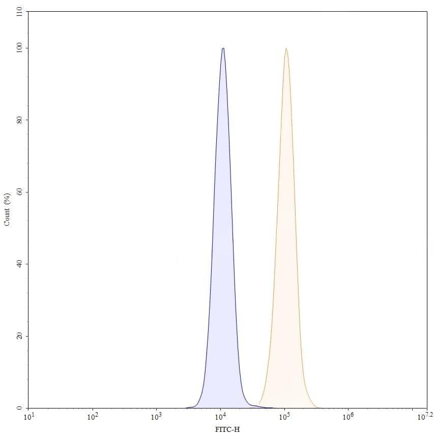 SEC-HPLC detection for Research Grade Otilimab. | Detects Human CSF2/GM-CSF in indirect ELISAs. | SDS-PAGE for Research Grade Otilimab. | Flow-cytometry using FITC anti-human CSF2 antibody. MDA-MB-231 cells were fixed and permeabilized, then stained with an irrelevant antibody (Blue Histogram) or an FITC anti-human CSF2 monoclonal antibody (Catalog: HY213026, Yellow Histogram) at a concentration of 5 µg/ml for 30 mins at RT. After washing, cells analysed on a NovoCyte Flow Cytometer.
