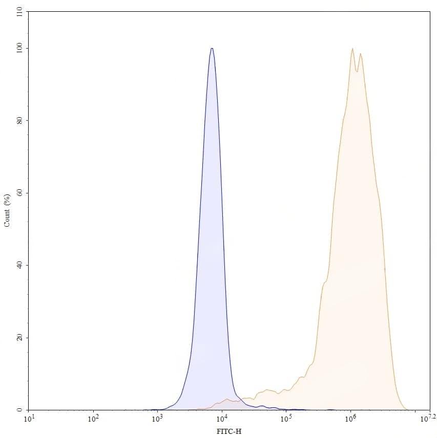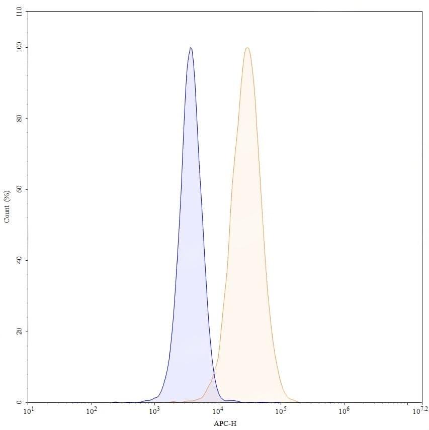 SEC-HPLC detection for Research Grade Avelumab. | Detects CD274/PD-L1/B7-H1 in indirect ELISAs. | SDS-PAGE for Research Grade Avelumab. | Flow-cytometry using anti-human CD274 antibody. Untransfected cells (blue Histogram) and Transfected cells (Yellow Histogram) were stained with an anti-human CD274 monoclonal antibody (Catalog HV974036) at a concentration of 5 µg/ml for 30 mins at RT. After washing, bound antibody was detected using a Goat Anti-Human IgG H&L Polyclonal Antibody, FITC (abinScience: HF690414) and cells analysed on a NovoCyte Flow Cytometer. | Flow-cytometry using FITC anti-human CD274 antibody. MDA-MB-231 cells were stained with an irrelevant antibody (Blue Histogram) or an FITC anti-human CD274 monoclonal antibody (Catalog: HV974036, Yellow Histogram) at a concentration of 5 µg/ml for 30 mins at RT. After washing, cells analysed on a NovoCyte Flow Cytometer. ### Flow-cytometry using APC anti-human CD274 antibody. MDA-MB-231 cells were stained with an irrelevant antibody (Blue Histogram) or an APC anti-human CD274 monoclonal antibody (Catalog: HV974036, Yellow Histogram) at a concentration of 5 µg/ml for 30 mins at RT. After washing, cells analysed on a NovoCyte Flow Cytometer.