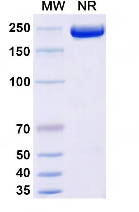 Ramatercept (ACE-031) is a soluble ActRIIB receptor and can be used as a soluble activin receptor 2 (ACVR2) antagonist. Ramatercept inhibits the signal pathway of muscle growth inhibition and has potential application in muscle atrophy.• Targeting the myostatin signaling pathway to treat muscle loss and metabolic dysfunction., PMID:33938454• Regulation of skeletal muscle mass in mice by a new TGF-beta superfamily member., PMID:9139826• GDF8 inhibition enhances musculoskeletal recovery and mitigates posttraumatic osteoarthritis following joint injury., PMID:38019905• Growth differentiation factor 8 down-regulates pentraxin 3 in human granulosa cells., PMID:25641196• Growth differentiation factor myostatin regulates epithelial-mesenchymal transition genes and enhances invasion by increasing serine protease inhibitors E1 and E2 in human trophoblast cells., PMID:37738042• Growth differentiation factor 8 induces SKOV3 ovarian cancer cell migration and E-cadherin down-regulation., PMID:27481097• Circulating Growth Differentiation Factor 11/8 Levels Decline With Age., PMID:26489925• Crystal structure of the WFIKKN2 follistatin domain reveals insight into how it inhibits growth differentiation factor 8 (GDF8) and GDF11., PMID:30814254• Effects of growth differentiation factor 8 on steroidogenesis in human granulosa-lutein cells., PMID:26607022• Molecular characterization of latent GDF8 reveals mechanisms of activation., PMID:29348202