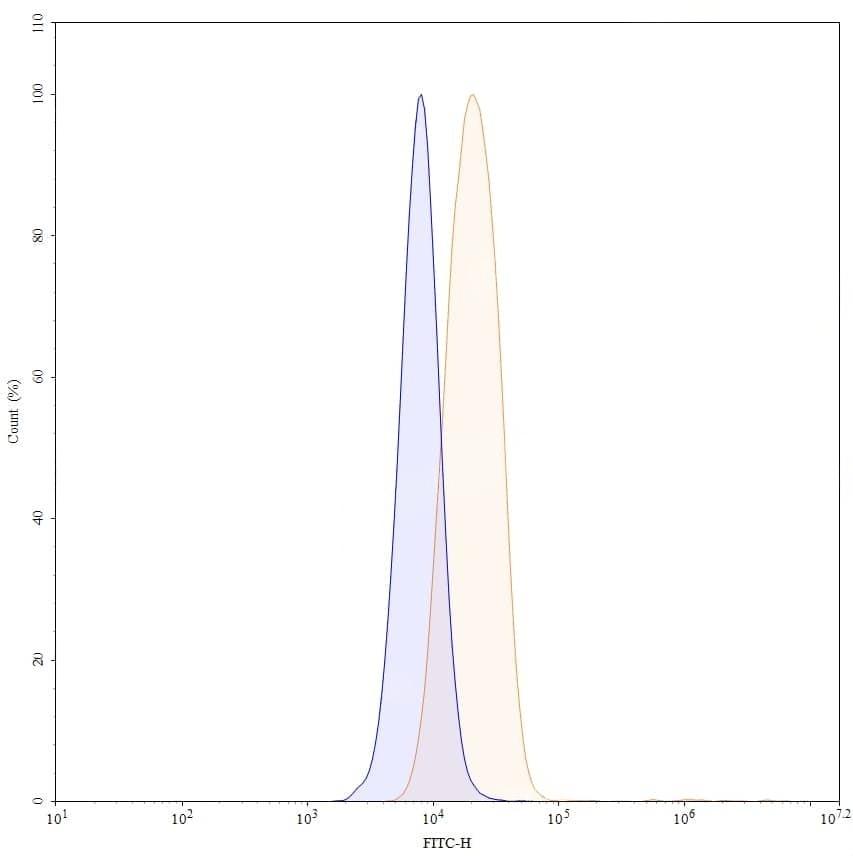 SEC-HPLC detection for Research Grade Prezalumab. | Detects CD275/ICOSLG in indirect ELISAs. | SDS-PAGE for Research Grade Prezalumab. | Flow-cytometry using anti-human CD275 antibody. U937 cells were stained with an irrelevant antibody (Blue Histogram) or an anti-human CD275 monoclonal antibody (Catalog: HF564016, Yellow Histogram) at a concentration of 5 µg/ml for 30 mins at RT. After washing, bound antibody was detected using a Goat Anti-Human IgG H&L Polyclonal Antibody, FITC (abinScience: HF690414) and cells analysed on a NovoCyte Flow Cytometer.