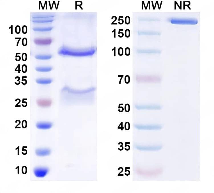 Detects Human DKK1 in indirect ELISAs. | SDS-PAGE for InVivoMAb Anti-Human DKK1 Antibody (DKN-01).