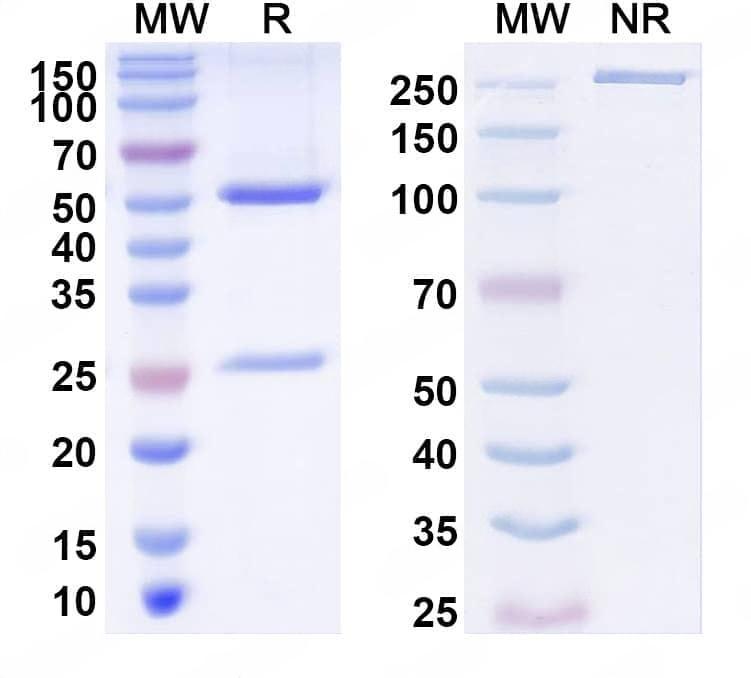 SEC-HPLC detection for InVivoMAb Anti-Human IGF2 (ABV0140). | SDS-PAGE for InVivoMAb Anti-Human IGF2 (Iv0064). | Western blot analysis was performed using anti-IGF1 monoclonal antibody at 1μg/ml on various samples.Lane 1:recombinant human IGF1 (Catalog No.:TD-HY095022)