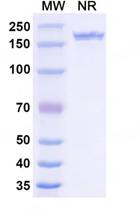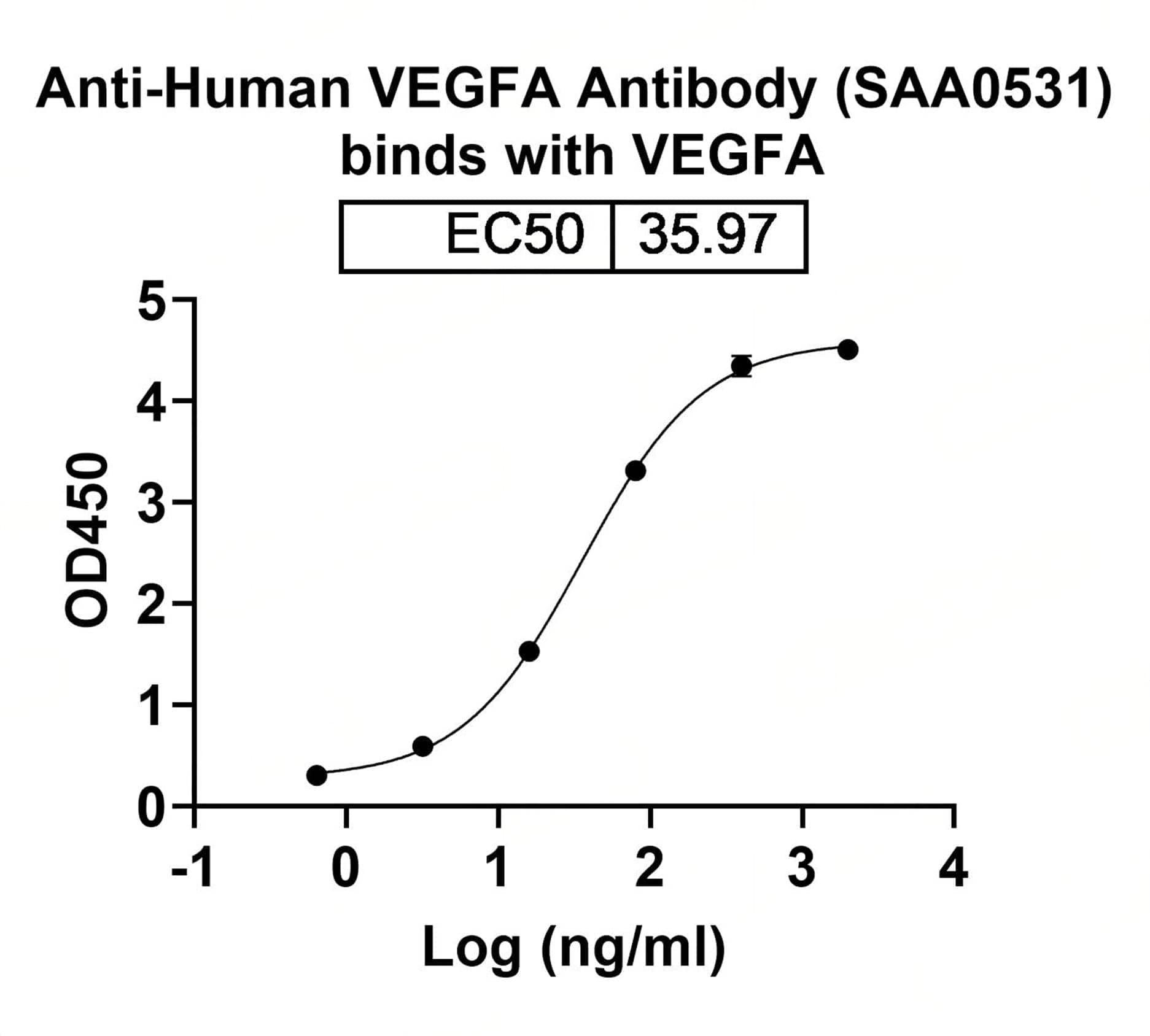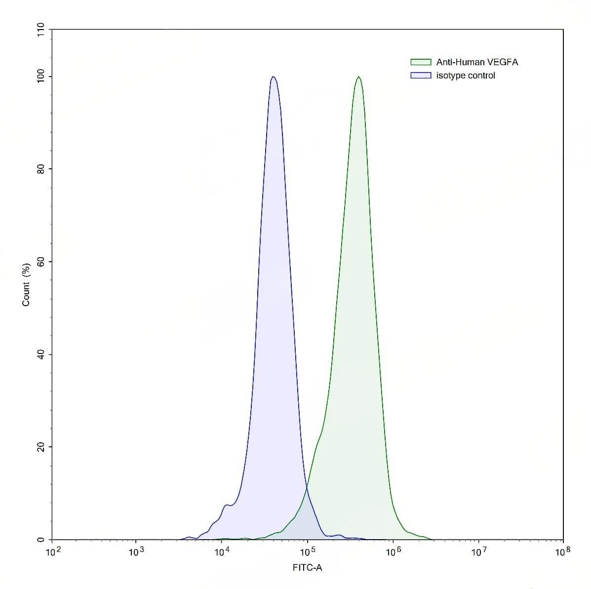 Detects Human VEGFA in indirect ELISAs. | Flow-cytometry using anti-human VEGFA antibody.VEGFA Transfected CHO cells were stained with an irrelevant antibody (Blue Histogram) or an anti-human VEGFA antibody monoclonal antibody (Catalog No.:TD-HB941013 ,Green Histogram) at a concentration of 5 µg/ml for 30 mins at RT. After washing, bound antibody was detected using a FITC conjugated goat anti-rabbit antibody (Catalog No.:TD-TF690414) and cells analysed on a NovoCyte Flow Cytometer.,Flow-cytometry using anti-human VEGFA antibody.HeLa cells were stained with an irrelevant antibody (Blue Histogram) or an anti-human VEGFA antibody monoclonal antibody (Catalog No.:TD-HB941013 ,Green Histogram) at a concentration of 5 µg/ml for 30 mins at RT. After washing, bound antibody was detected using a FITC conjugated goat anti-rabbit antibody (Catalog No.:TD-TF690414) and cells analysed on a NovoCyte Flow Cytometer.,Flow-cytometry using anti-human VEGFA antibody.U937 cells were stained with an irrelevant antibody (Blue Histogram) or an anti-human VEGFA antibody monoclonal antibody (Catalog No.:TD-HB941013 ,Green Histogram) at a concentration of 5 µg/ml for 30 mins at RT. After washing, bound antibody was detected using a FITC conjugated goat anti-rabbit antibody (Catalog No.:TD-TF690414) and cells analysed on a NovoCyte Flow Cytometer. | SDS-PAGE for Anti-Human VEGFA Antibody (SAA0531).