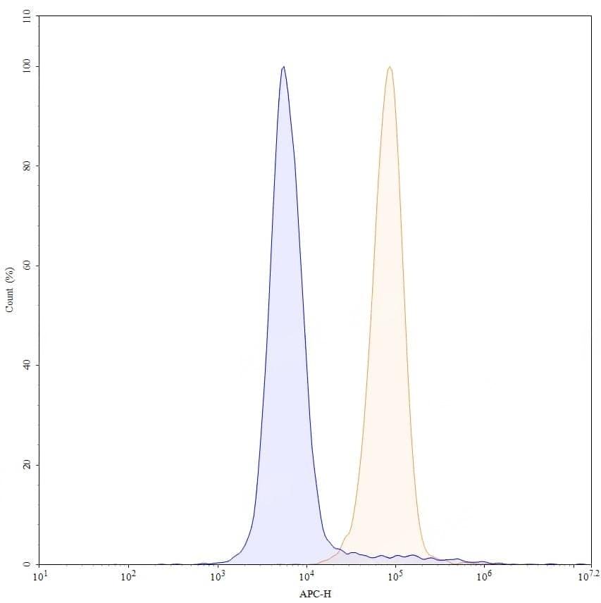 SEC-HPLC detection for Anti-Human CD40/TNFRSF5 Antibody (ABS2001). | Flow-cytometry using anti-human CD40 antibody. U2OS cells were stained with an irrelevant antibody (Blue Histogram) or an anti-human CD40 monoclonal antibody (Catalog No.:TD-HB782023, Yellow Histogram) at a concentration of 5 µg/ml for 30 mins at RT. After washing, bound antibody was detected using a a Goat Anti-Human IgG H&L Polyclonal Antibody, FITC (Catalog No.:TD-HF690414) and cells analysed on a NovoCyte Flow Cytometer. | SDS-PAGE for Anti-Human CD40/TNFRSF5 Antibody (SAA2006). | Flow-cytometry using APC anti-human CD40 antibody. U2OS cells were stained with an irrelevant antibody (Blue Histogram) or an APC anti-human CD40 monoclonal antibody (Catalog No.:TD-HB782023, Yellow Histogram) at a concentration of 5 µg/ml for 30 mins at RT. After washing, and cells analysed on a NovoCyte Flow Cytometer.,Flow-cytometry using PE anti-human CD40 antibody. U2OS cells were stained with an irrelevant antibody (Blue Histogram) or an PE anti-human CD40 monoclonal antibody (Catalog No.:TD-HB782023, Yellow Histogram) at a concentration of 5 µg/ml for 30 mins at RT. After washing, and cells analysed on a NovoCyte Flow Cytometer.