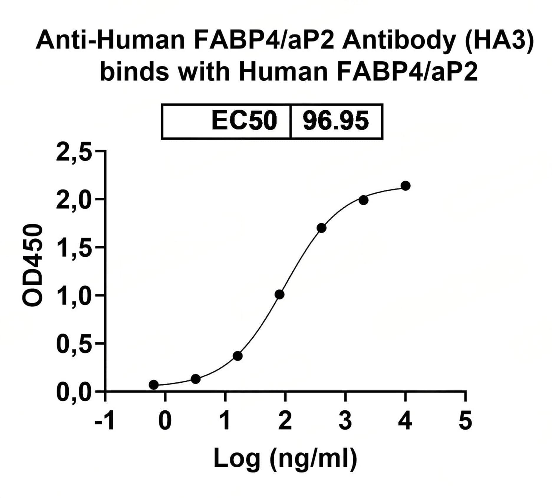 Detects Human FABP4/aP2 in indirect ELISAs. | SDS-PAGE for Anti-Human FABP4/aP2 Antibody (HA3). | Western blot analysis was performed using anti-FABP4 monoclonal antibody at 1µg/ml on various samples.Lane 1:recombinant human FABP4 (Catalog No.:TD-HB171012)Lane 2:negative control