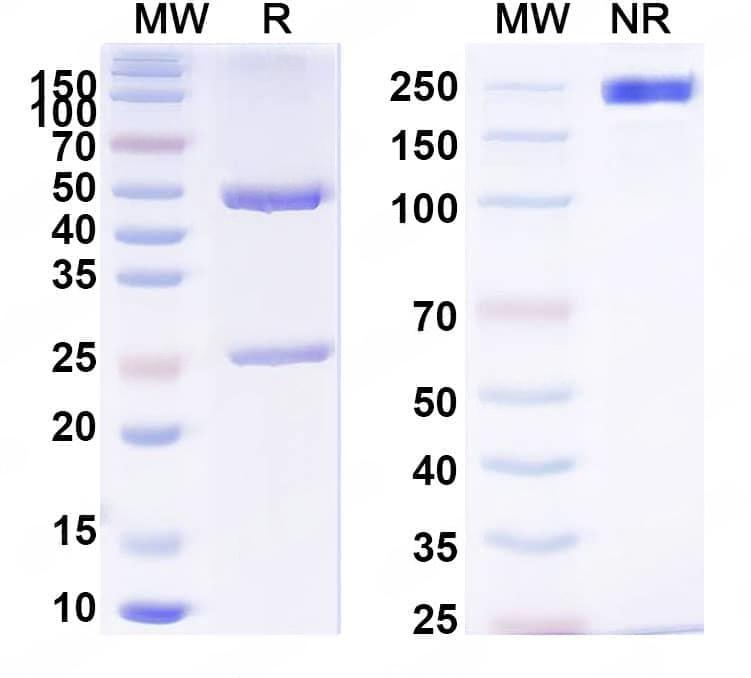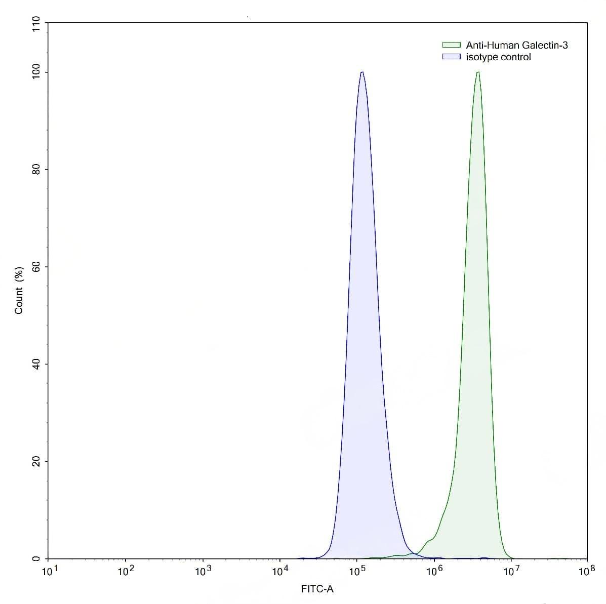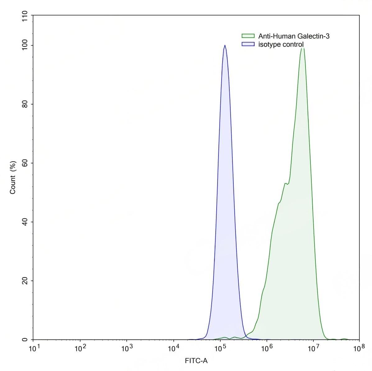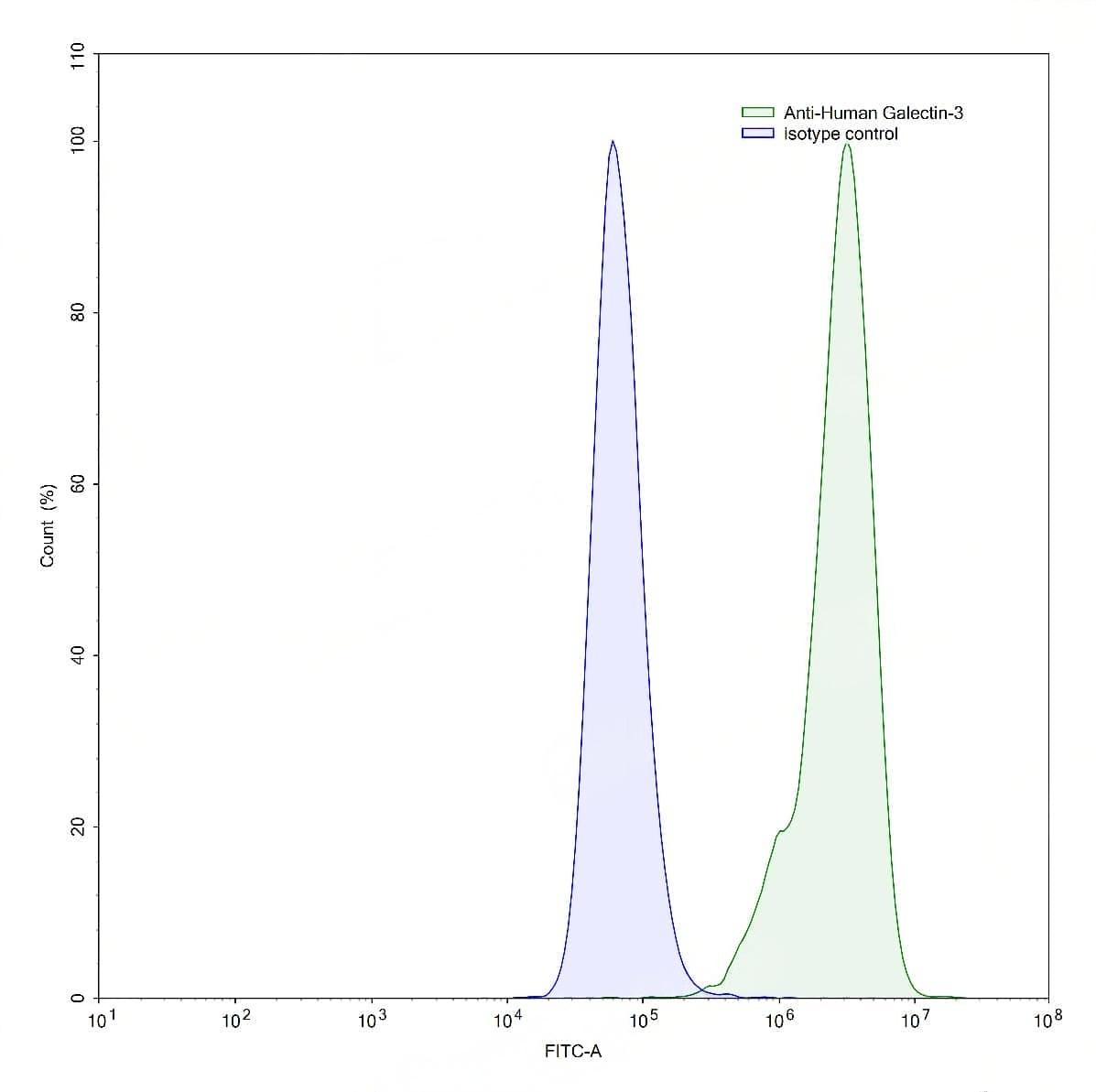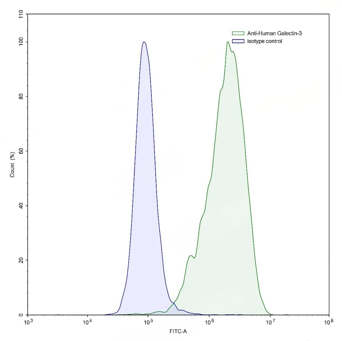 Detects Human LGALS3 in indirect ELISAs. | Flow-cytometry using anti-human Galectin-3 antibody.HaCaT cells were stained with an irrelevant antibody (Blue Histogram) or an anti-human Galectin-3 antibody monoclonal antibody (Catalog No.:TD-HB167023 ,Green Histogram) at a concentration of 5 µg/ml for 30 mins at RT. After washing, bound antibody was detected using a FITC conjugated goat anti-mouse antibody (Catalog No.:TD-MF690414) and cells analysed on a NovoCyte Flow Cytometer.,Flow-cytometry using anti-human Galectin-3 antibody.MCF7 cells were stained with an irrelevant antibody (Blue Histogram) or an anti-human Galectin-3 antibody monoclonal antibody (Catalog No.:TD-HB167023 ,Green Histogram) at a concentration of 5 µg/ml for 30 mins at RT. After washing, bound antibody was detected using a FITC conjugated goat anti-mouse antibody (Catalog No.:TD-MF690414) and cells analysed on a NovoCyte Flow Cytometer.,Flow-cytometry using anti-human Galectin-3 antibody.HeLa cells were stained with an irrelevant antibody (Blue Histogram) or an anti-human Galectin-3 antibody monoclonal antibody (Catalog No.:TD-HB167023 ,Green Histogram) at a concentration of 5 µg/ml for 30 mins at RT. After washing, bound antibody was detected using a FITC conjugated goat anti-mouse antibody (Catalog No.:TD-MF690414) and cells analysed on a NovoCyte Flow Cytometer.,Flow-cytometry using anti-human Galectin-3 antibody.SiHa cells were stained with an irrelevant antibody (Blue Histogram) or an anti-human Galectin-3 antibody monoclonal antibody (Catalog No.:TD-HB167023 ,Green Histogram) at a concentration of 5 µg/ml for 30 mins at RT. After washing, bound antibody was detected using a FITC conjugated goat anti-mouse antibody (Catalog No.:TD-MF690414) and cells analysed on a NovoCyte Flow Cytometer. | SDS-PAGE for Anti-Human Gal3/Galectin-3 Antibody (M3/38). | Flow-cytometry using anti-human Galectin-3 antibody. 5637 cells were fixed and permeabilized, then stained with an irrelevant antibody (Blue Histogram) or an anti-human Galectin-3 monoclonal antibody (Catalog No.:TD-HB167023, Yellow Histogram) at a concentration of 5 µg/ml for 30 mins at RT. After washing, bound antibody was detected using Goat Anti-Mouse IgG H&L Polyclonal Antibody, FITC (Catalog No.:TD-MF690414) and cells analysed on a NovoCyte Flow Cytometer.