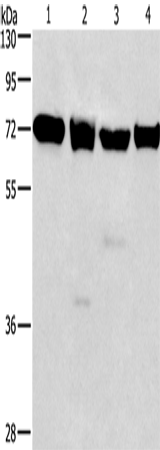 Western blot analysis of IL-2 Receptor beta in 231, 293T, Raji, hela lysates using IL-2 Receptor beta antibody