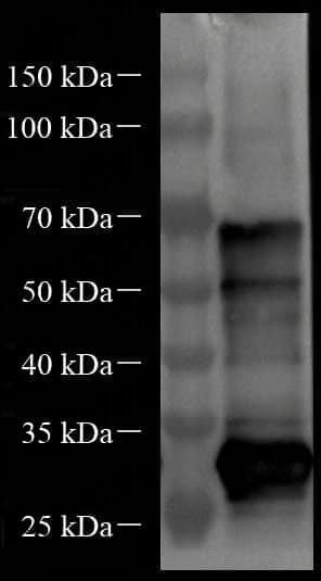 SDS-PAGE for Recombinant Monkeypox virus/MPXV E8L Protein, N-His | Western blot analysis was performed using anti-monkeypox virus E8L polyclonal antibody (Catalog No.:TD-VK680014) at 1ug/mL on recombinant monkeypox virus E8L protein.