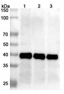 Reconstitute in sterile water for a stock solution. Adjust the volume of sterile water so that, after reconstitution, the final stock concentration matches the value indicated on the product label or datasheet. RECONSTITUTION PROTOCOL 1. Allow the product to be reconstituted and the reconstitution diluent to reach room temperature. 2. Tap or briefly centrifuge the product vial before opening to dislodge any lyophilized material that may be dispersed on the wall or cap of the vial. 3. Use the diluent and stock concentration recommended in the product datasheet. If preparing a stock concentration higher than recommended, contact Technical Service. 4. After adding the diluent, re-cap the vial and invert gently by hand or place on a slow rocking platform to allow the reconstitution diluent to coat all the surfaces inside the vial.Note: Do not mix by vortexing or by pipetting the material up and down. 5. Allow the vial to sit at room temperature with gentle agitation for at least 15 minutes before aliquotting or using. 6. Store the reconstituted material in single use aliquots in polypropylene or siliconized tubes. Aliquots of 10 μL or larger are recommended.