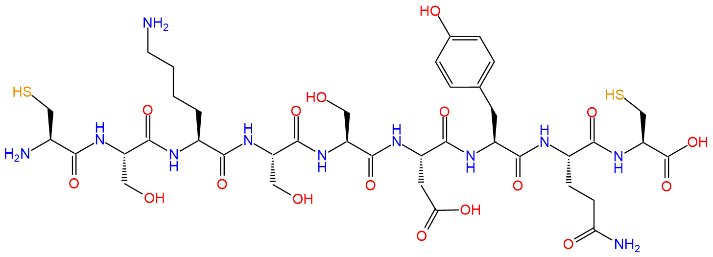 CSKSSDYQC (Disulfide bridge: C1-C9)(CSK)肽可以特异性识别杯状细胞,由9个氨基酸的组成的二硫键环肽。