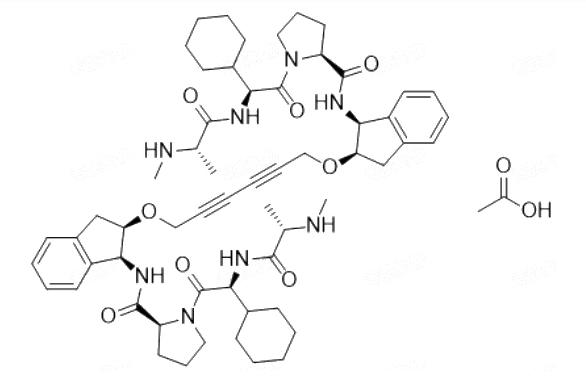 AZD5582醋酸盐是一种有效的IAP抑制剂,其与cIAP1、cIAP2和XIAP的BIR3结构域有效结合(IC50分别为15、21和15nM)。在MDA-MB-231乳腺癌症细胞系中,其在体外亚纳米浓度下引起cIAP1降解并诱导细胞凋亡。