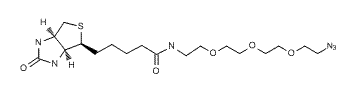 Biotinylation reagent with Azide, and a 3 PEG spacer. Labels terminal alkynes via a copper-catalyzed “click reaction". Useful for labeling fluorescent dyes with triple bond alkyne groups.