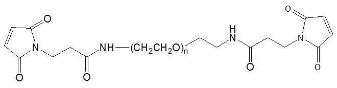 Maleimide functionalized polyethylene glycol, Maleimide PEG is a sulfhydryl (thiol/SH) group reactive PEG derivative that can be used to selectively modify protein, peptide or any other surfaces with availablesulfhydryl groups. The reaction between maleimide and thiol proceeds readily at pH 6.5~7.5 to form stable thioether bonds.