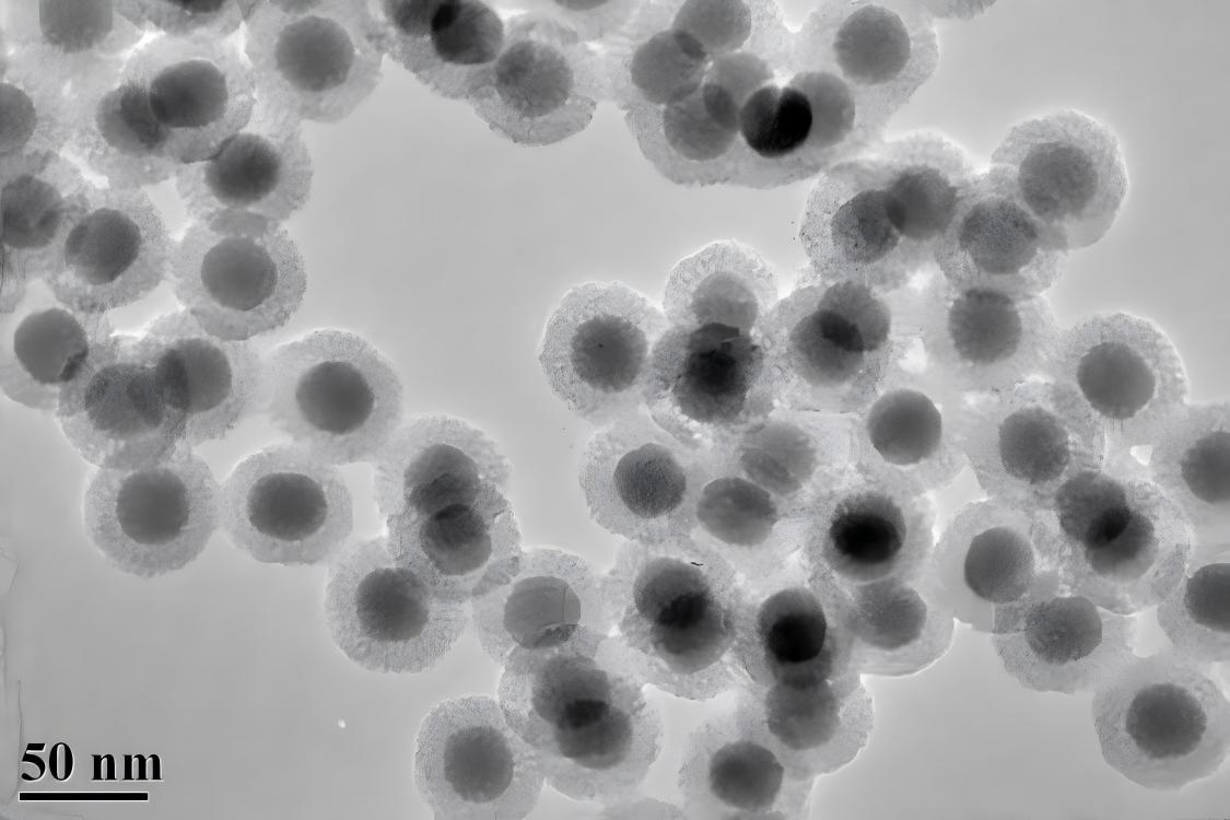 介孔二氧化硅包裹上转换纳米粒子,激发波长:808nm;发射波长:540/650nm,粒径50-60nm,分散在水里。