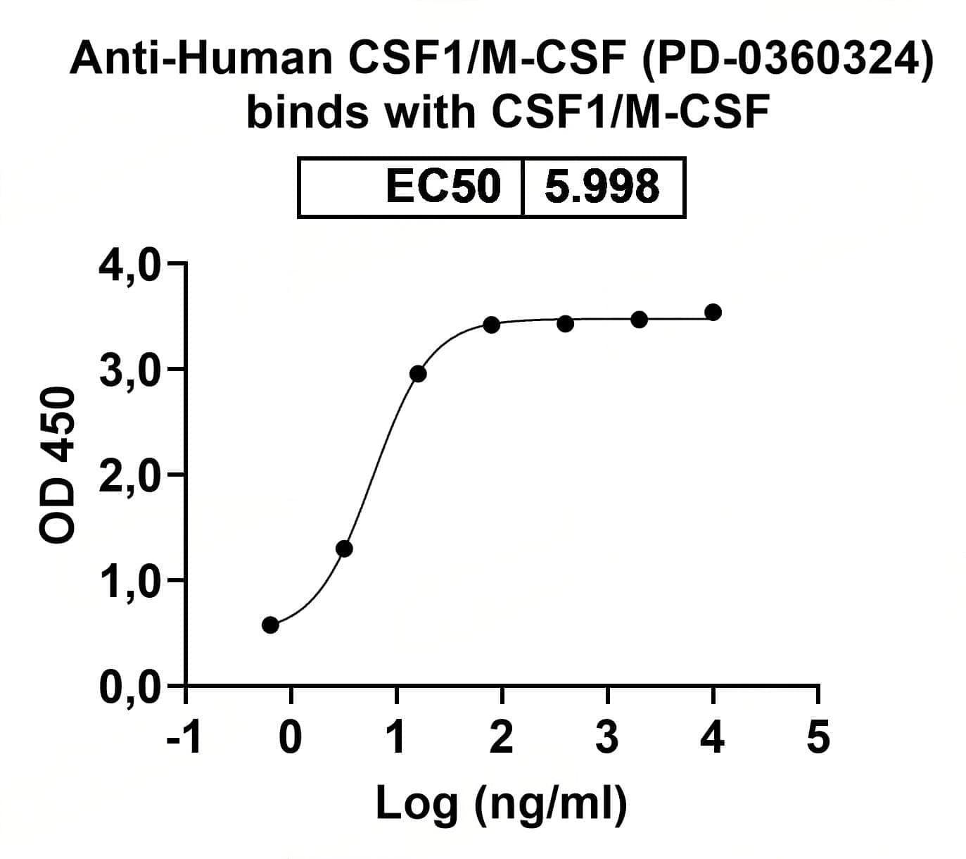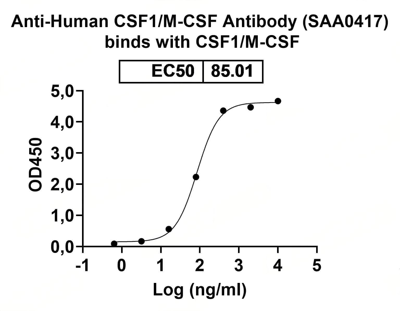 SDS-PAGE for Recombinant Human CSF1/M-CSF Protein, N-His | Detected by Anti-Human CSF1/M-CSF Antibody (SAA0417) in indirect ELISA.,Detected by Research Grade Anti-Human CSF1/M-CSF (PD-0360324) (Catalog No.:TD-HY515036) in indirect ELISA