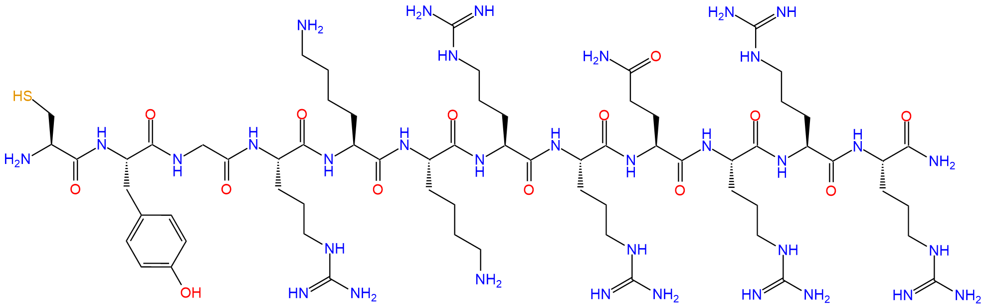 H2N-Cys-Tyr-Gly-Arg-Lys-Lys-Arg-Arg-Gln-Arg-Arg-Arg-NH2 |