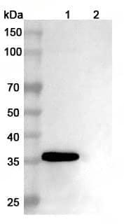 Use a manual defrost freezer and avoid repeated freeze thaw cycles. Store at 2 to 8°C for frequent use. Store at -20 to -80°C for twelve months from the date of receipt.