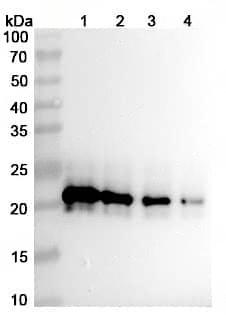 Reconstitute in sterile water for a stock solution. Adjust the volume of sterile water so that, after reconstitution, the final stock concentration matches the value indicated on the product label or datasheet. RECONSTITUTION PROTOCOL 1. Allow the product to be reconstituted and the reconstitution diluent to reach room temperature. 2. Tap or briefly centrifuge the product vial before opening to dislodge any lyophilized material that may be dispersed on the wall or cap of the vial. 3. Use the diluent and stock concentration recommended in the product datasheet. If preparing a stock concentration higher than recommended, contact Technical Service. 4. After adding the diluent, re-cap the vial and invert gently by hand or place on a slow rocking platform to allow the reconstitution diluent to coat all the surfaces inside the vial.Note: Do not mix by vortexing or by pipetting the material up and down. 5. Allow the vial to sit at room temperature with gentle agitation for at least 15 minutes before aliquotting or using. 6. Store the reconstituted material in single use aliquots in polypropylene or siliconized tubes. Aliquots of 10 μL or larger are recommended.