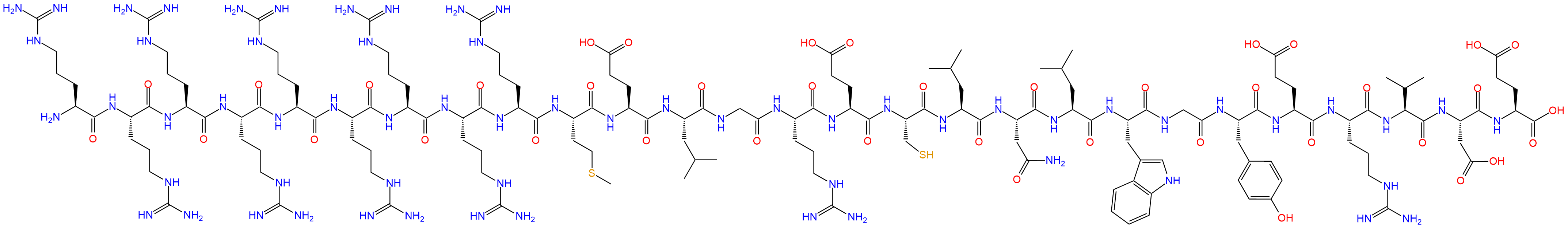 H2N-Arg-Arg-Arg-Arg-Arg-Arg-Arg-Arg-Arg-Met-Glu-Leu-Gly-Arg-Glu-Cys-Leu-Asn-Leu-Trp-Gly-Tyr-Glu-Arg-Val-Asp-Glu-OH |
