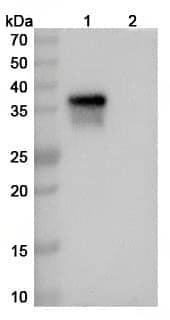 Use a manual defrost freezer and avoid repeated freeze thaw cycles. Store at 2 to 8°C for frequent use. Store at -20 to -80°C for twelve months from the date of receipt.