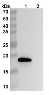 SDS-PAGE for Recombinant Human IL18/IL1F4 Protein, C-His | Detected by Anti-IL18/IL1F4 monoclonal antibody (Catalog No.:TD-HC517046) | Detected by Research Grade Anti-Human IL18/IL1F4 (GSK 1070806) (Catalog No.:TD-HC517046) in indirect ELISA
