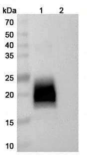 Use a manual defrost freezer and avoid repeated freeze thaw cycles. Store at 2 to 8°C for frequent use. Store at -20 to -80°C for twelve months from the date of receipt.