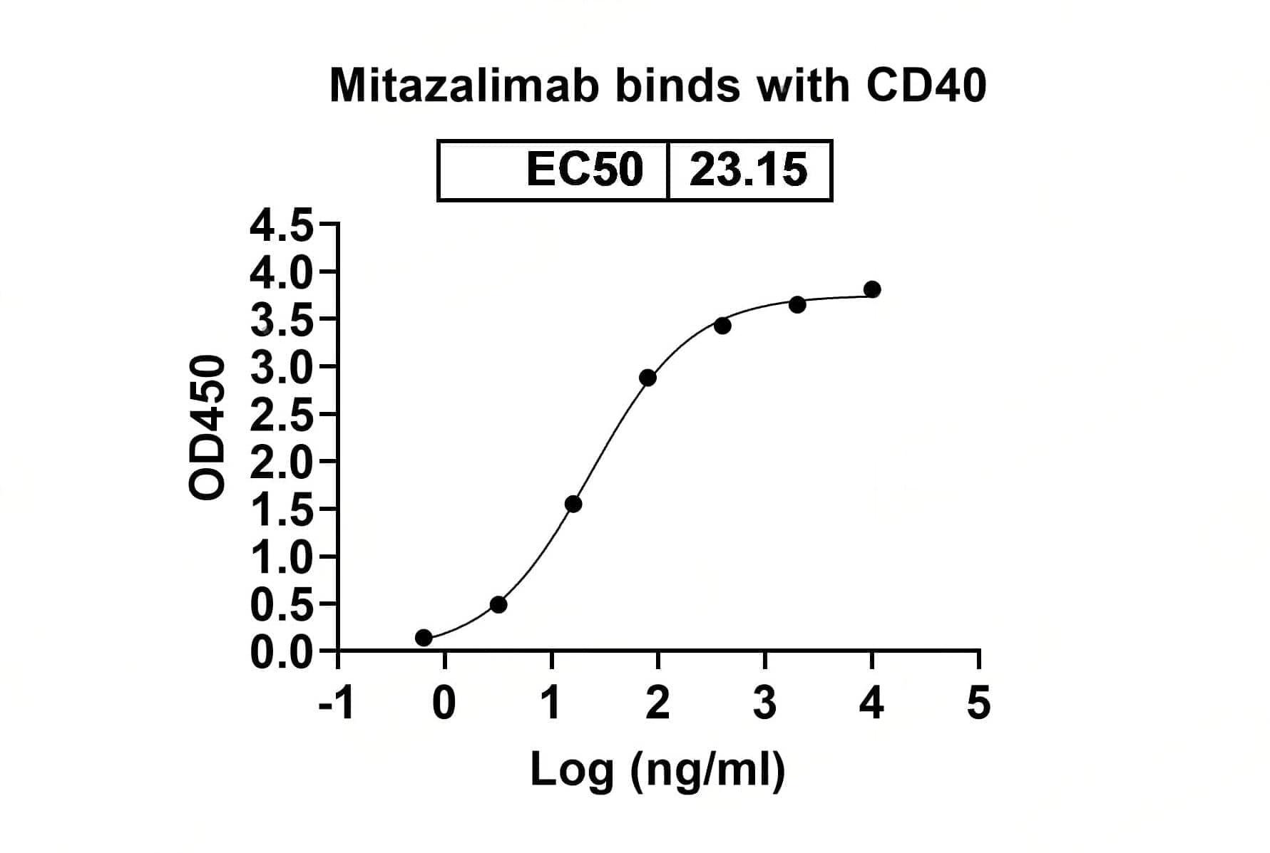 SDS-PAGE for Recombinant Human CD40/TNFRSF5 Protein, C-His | Detects Tecaginlimab in indirect ELISAs.,Detects Human CD40/TNFRSF5 Antibody (SAA1387) in indirect ELISAs.,Detects Human CD40/TNFRSF5 Antibody in indirect ELISAs.,Detects Bleselumab in indirect ELISAs.,Detects Selicrelumab in indirect ELISAs.,Detects Mitazalimab in indirect ELISAs.,Detects Dacetuzumab in indirect ELISAs.,Detects Sotigalimab in indirect ELISAs.,Detects Ravagalimab in indirect ELISAs.,Detects Lucatumumab in indirect ELISAs.,Detected by Research Grade Teneliximab in indirect ELISA.,Detected by Research Grade Anti-Human CD40/TNFRSF5 (KPL-404) (Catalog No.:TD-HB782226) in indirect ELISA.,Detected by Inezetamab (Catalog No.:TD-HB782146) in indirect ELISA.,Detected by Dalnicastobart (Catalog No.:TD-HB782316) in indirect ELISA.