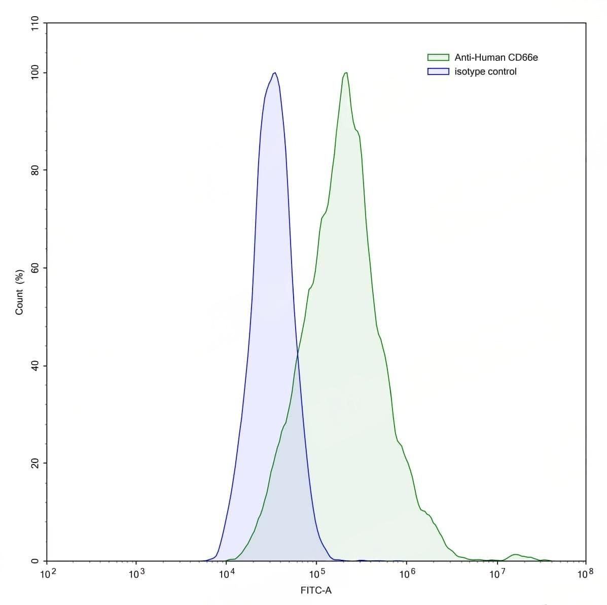 SEC-HPLC detection for Anti-Human CD66e/CEA/CEACAM5 Antibody (ABS0313). | Flow-cytometry using anti-human CD66e antibody.CD66e Transfected CHO cells were stained with an irrelevant antibody (Blue Histogram) or an anti-human CD66e antibody monoclonal antibody (Catalog No.:TD-HY546107 ,Green Histogram) at a concentration of 5 µg/ml for 30 mins at RT. After washing, bound antibody was detected using a FITC conjugated goat anti-mouse antibody (Catalog No.:TD-MF690414) and cells analysed on a NovoCyte Flow Cytometer. | Flow-cytometry using anti-human CD66e antibody. HPAC cells were stained with an irrelevant antibody (Blue Histogram) or an anti-human CD66e monoclonal antibody (Catalog No.:TD-HY546107, Yellow Histogram) at a concentration of 5 µg/ml for 30 mins at RT. After washing, bound antibody was detected using a a Goat Anti-Mouse IgG H&L Polyclonal Antibody, FITC (Catalog No.:TD-MF690414) and cells analysed on a NovoCyte Flow Cytometer.