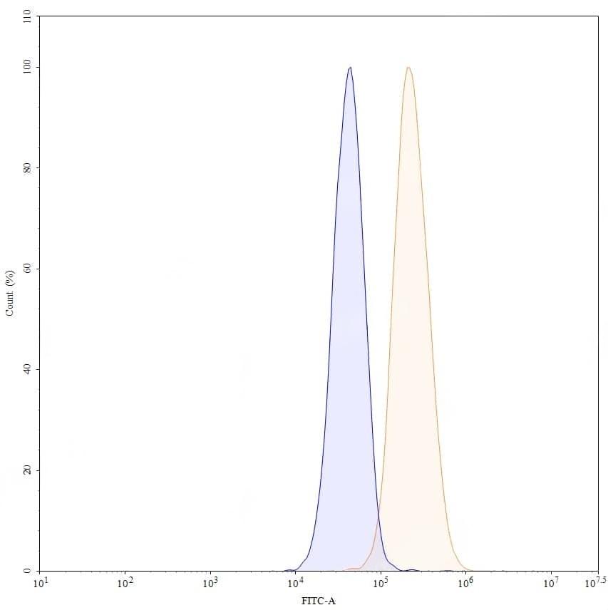 Flow-cytometry using anti-human CD340 antibody.MCF7 cells were stained with an irrelevant antibody (Blue Histogram) or an anti-human CD340 antibody monoclonal antibody (Catalog No.:TD-HY286107 ,Green Histogram) at a concentration of 5 ug/ml for 30 mins at RT. After washing, bound antibody was detected using a FITC conjugated goat anti-human antibody (Catalog No.:TD-HF690414) and cells analysed on a NovoCyte Flow Cytometer. | Flow-cytometry using anti-human CD340 antibody.MDA-MB-231 cells were stained with an irrelevant antibody (Blue Histogram) or an anti-human CD340 antibody monoclonal antibody (Catalog No.:TD-HY286107 ,Green Histogram) at a concentration of 5 ug/ml for 30 mins at RT. After washing, bound antibody was detected using a FITC conjugated goat anti-human antibody (Catalog No.:TD-HF690414) and cells analysed on a NovoCyte Flow Cytometer. | Flow-cytometry using anti-human CD340 antibody.SK-BR-3 cells were stained with an irrelevant antibody (Blue Histogram) or an anti-human CD340 antibody monoclonal antibody (Catalog No.:TD-HY286107 ,Green Histogram) at a concentration of 5 ug/ml for 30 mins at RT. After washing, bound antibody was detected using a FITC conjugated goat anti-human antibody (Catalog No.:TD-HF690414) and cells analysed on a NovoCyte Flow Cytometer. | SEC-HPLC detection for Anti-Human CD340/ERBB2/HER2 Antibody (4D5V8). | Flow-cytometry using anti-human CD340 antibody. SK-BR-3 cells were stained with an irrelevant antibody (Blue Histogram) or an anti-human CD340 monoclonal antibody (Catalog No.:TD-HY286107, Yellow Histogram) at a concentration of 5 µg/ml for 30 mins at RT. After washing, bound antibody was detected using a a Goat Anti-Human IgG H&L Polyclonal Antibody, FITC (Catalog No.:TD-HF690414) and cells analysed on a NovoCyte Flow Cytometer. | Flow-cytometry using anti-human CD340 antibody. MCF-7 cells were stained with an irrelevant antibody (Blue Histogram) or an anti-human CD340 monoclonal antibody (Catalog No.:TD-HY286107, Yellow Histogram) at a concentration of 5 µg/ml for 30 mins at RT. After washing, bound antibody was detected using a a Goat Anti-Human IgG H&L Polyclonal Antibody, FITC (Catalog No.:TD-HF690414) and cells analysed on a NovoCyte Flow Cytometer.