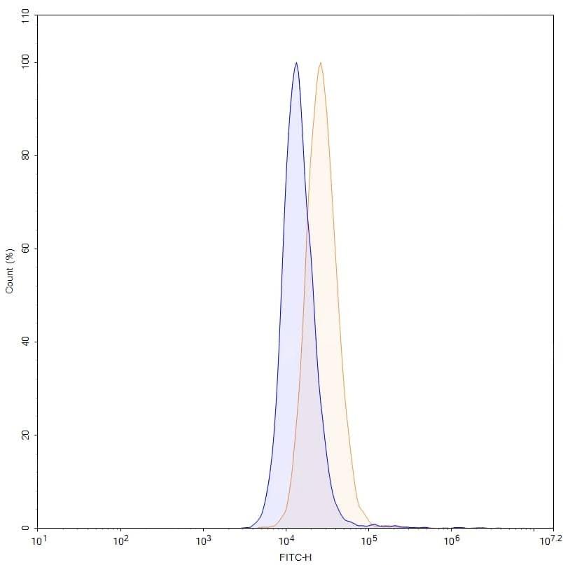 SDS-PAGE for Anti-Human CD220/INSR Antibody (SAA0334) | Flow-cytometry using anti-human CD220 antibody. MCF7 cells were stained with an irrelevant antibody (Blue Histogram) or an anti-human CD220 monoclonal antibody (Catalog No.:TD-HY112207, Yellow Histogram) at a concentration of 5 µg/ml for 30 mins at RT. After washing, bound antibody was detected using a Goat Anti-Mouse IgG H&L Polyclonal Antibody, FITC (Catalog No.:TD-MF690414) and cells analysed on a NovoCyte Flow Cytometer. | Flow-cytometry using anti-human CD220 antibody. HepG2 cells were stained with an irrelevant antibody (Blue Histogram) or an anti-human CD220 monoclonal antibody (Catalog No.:TD-HY112207, Yellow Histogram) at a concentration of 5 µg/ml for 30 mins at RT. After washing, bound antibody was detected using a Goat Anti-Mouse IgG H&L Polyclonal Antibody, FITC (Catalog No.:TD-MF690414) and cells analysed on a NovoCyte Flow Cytometer.