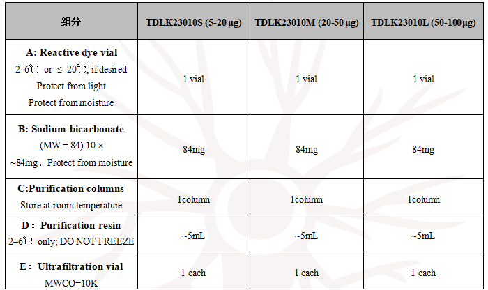Tanda® 标记试剂盒适合标记 IgG等蛋白。如果标记其他非IgG蛋白质,可能标记的 DOL(degree of labeling)要根据不同蛋白来计算所需染料量。Tanda® 标记试剂盒可能导致 IgM抗体变性。