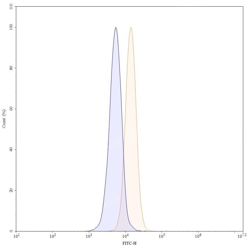 SEC-HPLC detection for Anti-Human CD182/CXCR2 Antibody (3H9). | Flow-cytometry using anti-human CD182 antibody. U937 cells were stained with an irrelevant antibody (Blue Histogram) or an anti-human CD182 monoclonal antibody (Catalog No.:TD-HB243107, Yellow Histogram) at a concentration of 5 µg/ml for 30 mins at RT. After washing, bound antibody was detected using a a Goat Anti-Mouse IgG H&L Polyclonal Antibody, FITC (Catalog No.:TD-MF690414) and cells analysed on a NovoCyte Flow Cytometer.