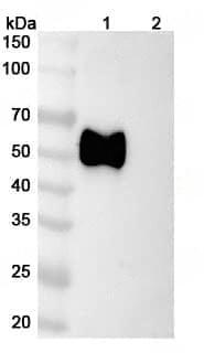 SDS-PAGE for InVivoMAb Anti-HSV1/HHV1 gE/Envelope glycoprotein E (Iv0046) | Detects recombinant HSV-1/HHV-1 gE (Catalog No.:TD-VK746011) in indirect ELISA | Western blot analysis was performed using anti-/ monoclonal antibody at 1ug/mL on various samples.Lane 1:recombinant HSV-1/HHV-1 gE(Catalog No.:TD-VK746011)Lane 2:negative controlLane 3:negative control