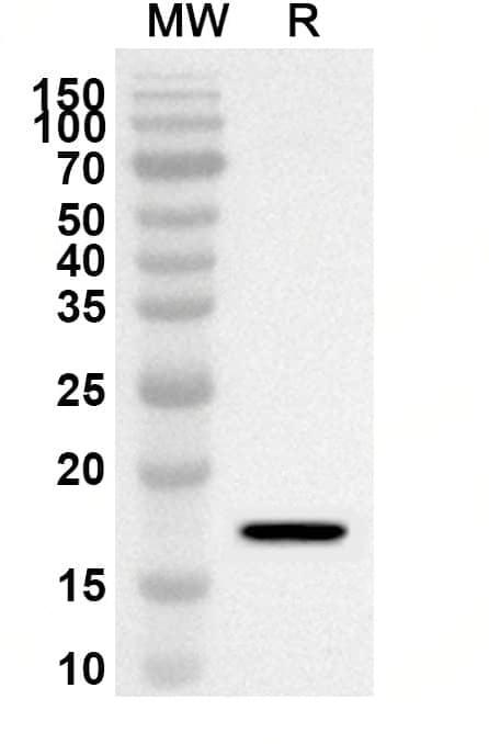 Western blot analysis was performed using anti-NSP10/GFL polyclonal antibody at 1ug/mL on recombinant NSP10/GFL (Catalog No.:TD-VK717012).