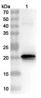 Western blot analysis was performed using anti-ASFV War-135/pE184L polyclonal antibody at 1ug/mL on recombinant ASFV War-135/pE184L (Catalog No.:TD-VK427012).,Western blot analysis was performed using anti-WAR-135 polyclonal antibody at 1ug/mL on various samples.Lane 1:recombinant ASFV War-135/pE184L (Catalog No:TD-VK427012)