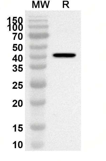 Western blot analysis was performed using anti-Human SERPINE2 polyclonal antibody at 1ug/mL on recombinant Human SERPINE2 (Catalog No.:TD-HY539012).