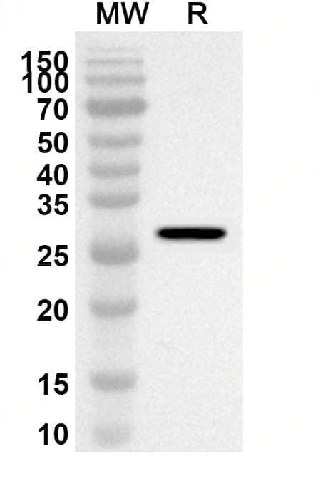 Western blot analysis was performed using anti-GZMA polyclonal antibody at 1ug/mL on recombinant GZMA (Catalog No.:TD-HY375012).