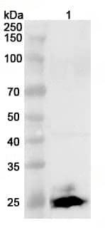 Western blot analysis was performed using anti-PRSS1 polyclonal antibody at 1ug/mL on various samples.Lane 1:Mouse pancreas lysate