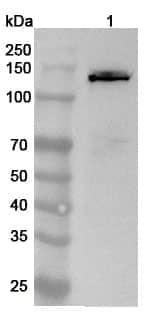 Western blot analysis was performed using anti-IVL polyclonal antibody at 1ug/mL on various samples.Lane 1:Hacat cell lysate