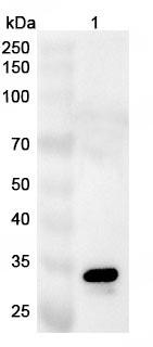 Western blot analysis was performed using anti-Human PSA/KLK3 polyclonal antibody at 1ug/mL on recombinant Human PSA/KLK3 (Catalog No.:TD-HY250012).,Western blot analysis was performed using anti-KLK3 polyclonal antibody at 1ug/mL on various samples.Lane 1:Lncap cell lysate