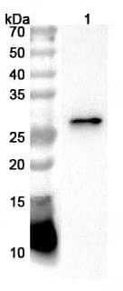 Western blot analysis was performed using anti-CTRL polyclonal antibody at 1µg/ml on various samples.Lane 1:Mouse pancreas lysate