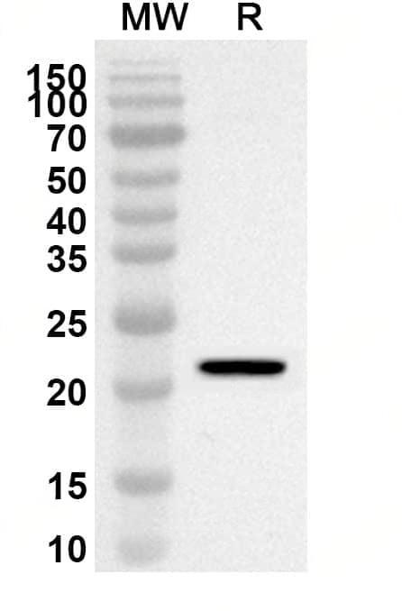 Western blot analysis was performed using anti-Human CXCL5/ENA-78 polyclonal antibody at 1ug/mL on recombinant Human CXCL5/ENA-78 (Catalog No.:TD-HW558022).