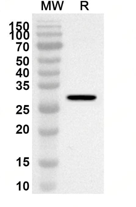 Western blot analysis was performed using anti-GZMK polyclonal antibody at 1ug/mL on recombinant GZMK (Catalog No.:TD-HW458012).